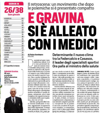 L'edizione odierna del "Corriere dello Sport" si sofferma sulla posizione di Gabriele Gravina, presidente della FIGC. Il numero uno del...