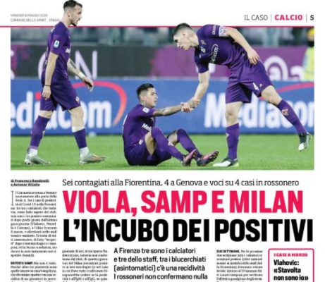 L'edizione odierna del "Corriere dello Sport" si sofferma su calciatori e staff tecnici di Fiorentina e Sampdoria risultati positivi al...