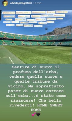 Dopo l'apertura agli allenamenti individuali sul campo del Barbera, Alberto Pelagotti pubblica su Instagram le prime sensazione per il ritorno...