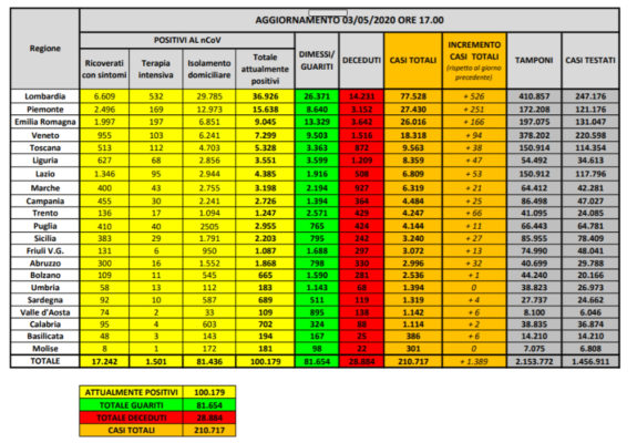 In Italia sono in totale 210.717 i casi di contagio, con un incremento di + 1.389 rispetto a ieri. I...