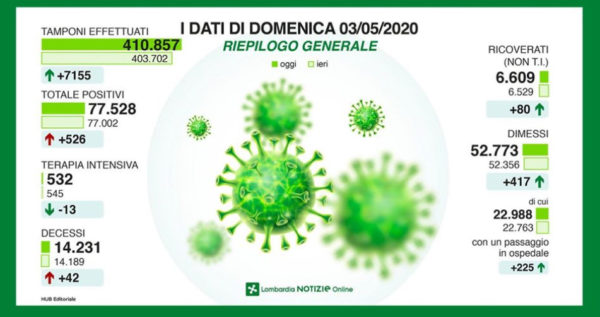 Secondo i dati della Protezione Civile, il numero dei nuovi decessi Coronavirus in Lombardia rispetto a ieri è di 42...