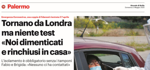 L'edizione odierna del "Giornale di Sicilia" racconta la vicenda di una coppia palermitana, rientrata da Londra il 7 aprile, ancora...