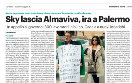 L'edizione odierna del "Giornale di Sicilia" si sofferma sulla situazione dei dipendenti Almaviva. Sky ha deciso di non rinnovare il...