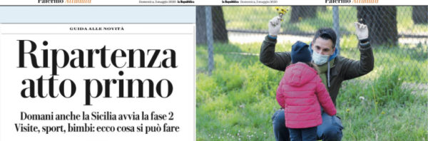 L'edizione odierna de "La Repubblica" si sofferma sulla Fase 2. Da domani si potrà far visita a parenti e fidanzati, uscire...