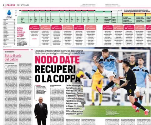 L'edizione odierna del "Corriere dello Sport" si è soffermata su coloro che, senza la ripartenza del campionato di calcio, rischiano...