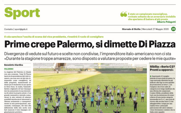 L'edizione odierna del "Giornale di Sicilia" ricorda l'ultima partita con la maglia rosanero dell'ex capitano del Palermo Eugenio Corini. Il...