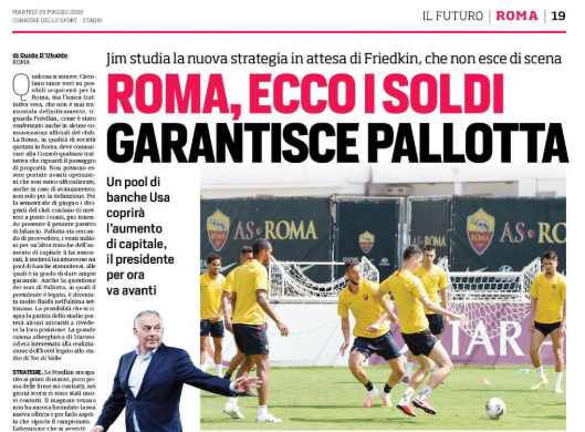 Corriere dello Sport: “Roma, ecco i soldi. Garantisce Pallotta. Un pool di banche. Usa coprirà l’aumento di capitale, il presidente per ora va avanti”