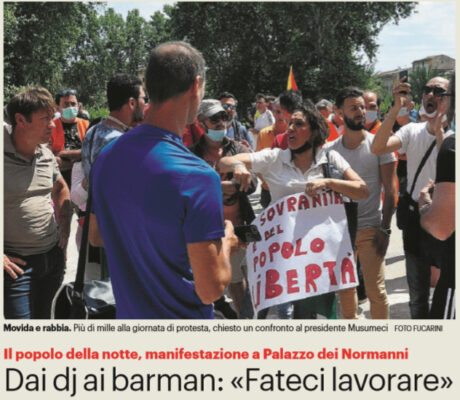 L'edizione odierna del "Giornale di Sicilia" si sofferma sulla manifestazione di dj, musicisti, impresari, organizzatori di eventi, camerieri, barman e...