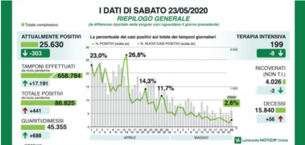La Regione Lombardia ha reso noti i dati delle ultime 24 ore. Il bollettino parla di 56 decessi nell'ultimo giorno...