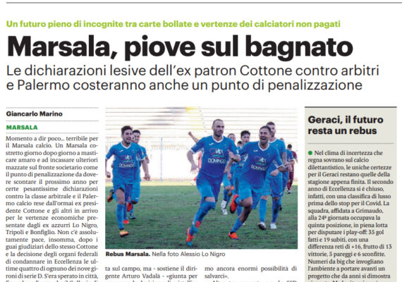 L'edizione odierna del "Giornale di Sicilia" si sofferma sulla delicata sfida del Marsala. Il club dovrà scontare un punto di...