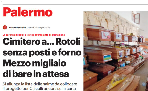 L'edizione odierna del "Giornale di Sicilia" si sofferma sulla situazione del cimitero dei Rotoli. 480 bare stanno aspettando che si...