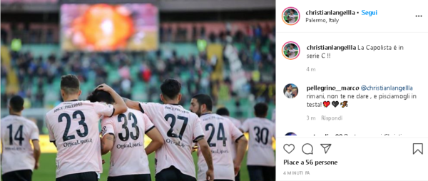 Attraverso un post pubblicato sul proprio profilo "Instagram", Christian Langella, calciatore in forza al Palermo, ha commentato così la promozione...