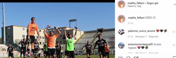 Mattia Fallani esulta sui social dopo il verdetto del Consiglio Federale, che ha sancito la promozione del Palermo in Serie...