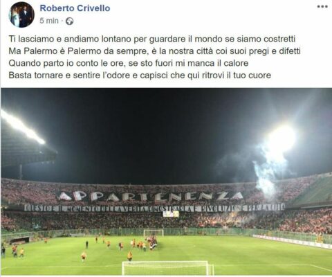 Roberto Crivello esulta sui social dopo il verdetto del Consiglio Federale, che ha sancito la promozione del Palermo in Serie...