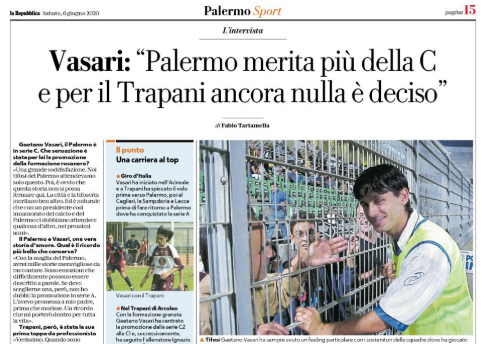 L'edizione odierna di Repubblica, riporta un'intervista realizzata a Gaetano Vasari. Il Palermo è in serie C. Che sensazione è stata...