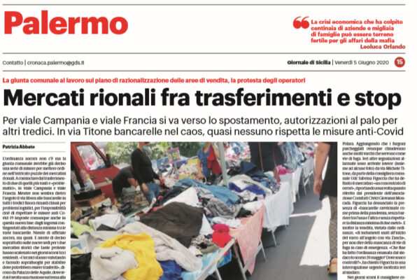 L'edizione odierna del "Giornale di Sicilia" si sofferma sui mercati rionali. Si pensa al trasferimento per quelli più vasti di...