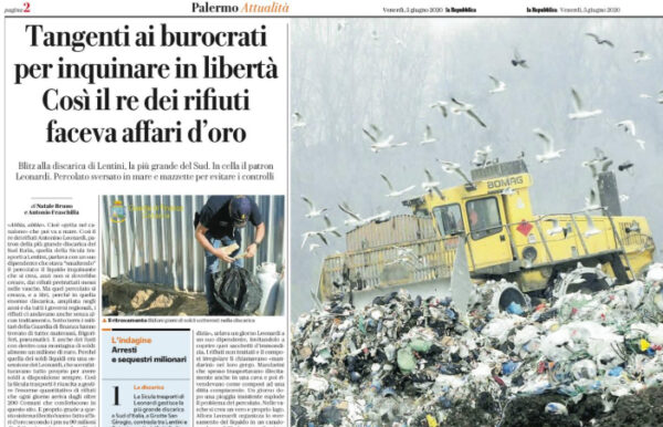 L'edizione odierna de "La Repubblica" si sofferma sull'arresto di Antonino Leonardi, patron della più grande discarica del Sud Italia, quella...