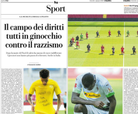 L'edizione odierna de "La Repubblica" si sofferma sul cambio di atteggiamento del calcio dopo la morte di George Floyd. Per...