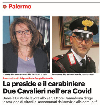 L'edizione odierna del "Giornale di Sicilia" si sofferma sull'onorificenza conferita ad un carabiniere e alla preside dell'istituto comprensivo Giovanni Falcone...