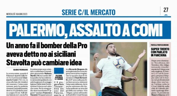 L'edizione odierna di "Tuttosport" si è soffermata su un giocatore accostato al Palermo, si tratta dell'attaccante Comi. Dopo il fallimento...