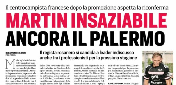 L'edizione odierna del "Corriere dello Sport" si sofferma sul momento di Malaury Martin, centrocampista del Palermo. Con molta probabilità, sarà...
