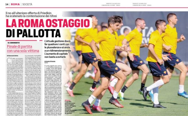 L'edizione odierna del "Corriere dello Sport" si sofferma sulla situazione della Roma. Il rischio è vedere il club ulteriormente ridimensionato,...