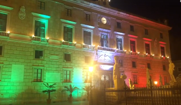 Palazzo delle Aquile e villa Whitaker, sede della Prefettura di Palermo illuminate con il tricolore. Stando a quanto riferito da...