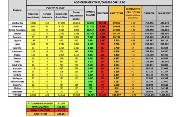 Come di consueto gli amministratori locali dirameranno il bilancio dei contagi da coronavirus in Lombardia aggiornato a lunedì 1 giugno...