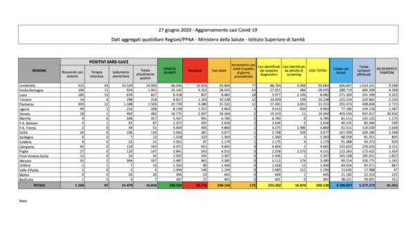 Il Ministero della Salute, congiuntamente con l’Istituto Superiore di Sanità e le Regioni, ha fornito il bilancio dei contagi da...