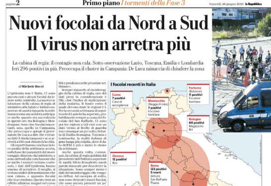 Repubblica: “«Il contagio torna nei Paesi che abbassano la guardia». L’Oms: allarme Europa”