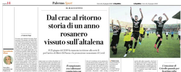 L'edizione odierna di "Repubblica" parla dell'anno vissuto dal Palermo. Il 25 giugno del 2019 i tifosi del Palermo venivano a...