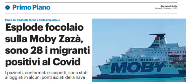 L'edizione odierna del "Giornale di Sicilia" parla di 28 migranti risultati positivi al Coronavirus sulla nave Moby Zazà ferma a...