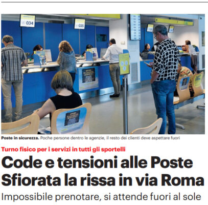L'edizione odierna del "Giornale di Sicilia" parla di attese e code con assembramenti negli ufficiali postali di Palermo. Lunghe code...