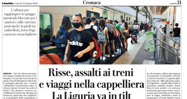 L'edizione odierna di "Repubblica" parla di una Liguria «in tilt». Ore di coda in autostrada e lungo l’Aurelia, da Lerici...