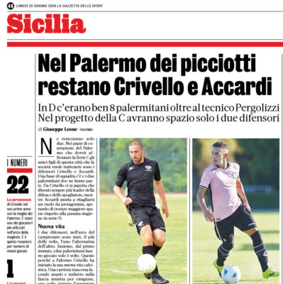 L'edizione odierna della "Gazzetta dello Sport" parla della permanenza dei palermitani nel Palermo. Resteranno soltanto Crivello e Accardi. Il primo...
