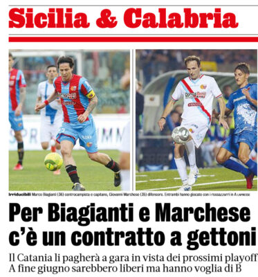 L'edizione odierna della "Gazzetta dello Sport" parla della situazione in casa Catania. Il capitano Biagianti e Giovanni Marchese sono a...