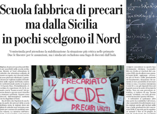 L'edizione odierna di "Repubblica" parla della situazione della scuola.Migliaia di precari e pochi posti liberi per assorbirli nella scuola siciliana....