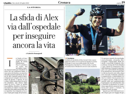 L'edizione odierna di "Repubblica" parla delle condizioni di Alex Zanardi che ieri, dopo 32 giorni, si è svegliato. Il suo...