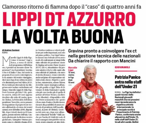 L'edizione odierna del "Corriere dello Sport" parla della possibilità di vedere Marcello Lippi come direttore tecnico della FIGC. L'idea c'era...