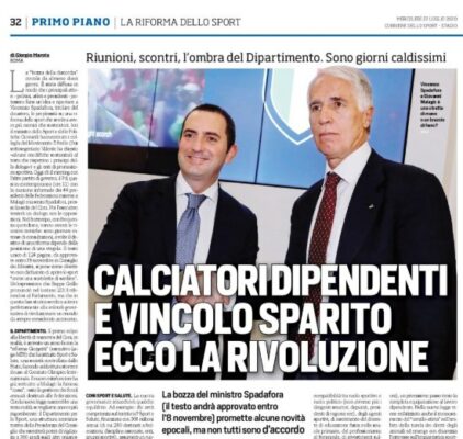 L'edizione odierna del "Corriere dello Sport" parla della "bozza della discordia". La riforma dello sport pare avere sempre più nemici...