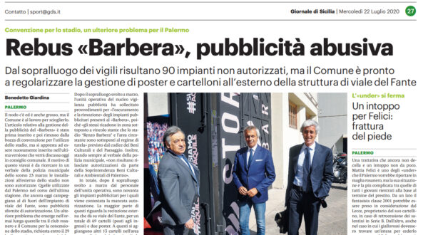 L'edizione odierna del "Giornale di Sicilia" parla di rebus Barbera. L’articolo relativo alla gestione della pubblicità del «Barbera» è stato...