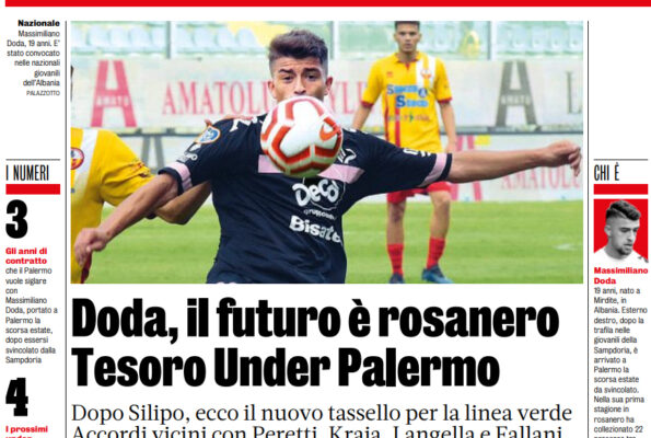 L'edizione odierna della "Gazzetta dello Sport" si sofferma sul futuro di Doda. Sarà ancora rosanero, approdando tra i professionisti dove...