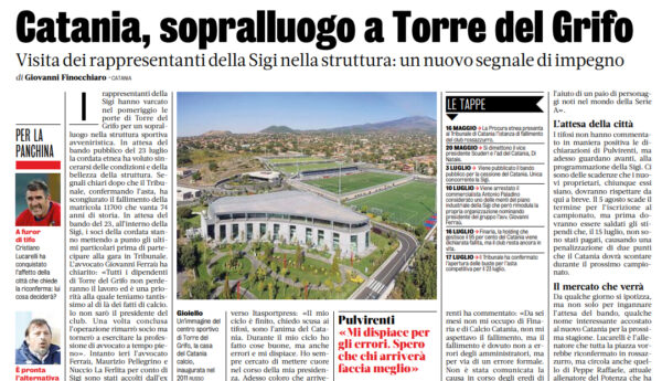 L'edizione odierna della "Gazzetta dello Sport" si sofferma sulla situazione del Catania. I rappresentanti della SIGI hanno fatto un sopralluogo...