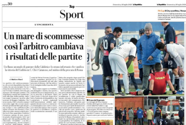Repubblica: “Lo spettro del calcioscommesse in Serie C. Così l’arbitro cambiava i risultati delle partite”