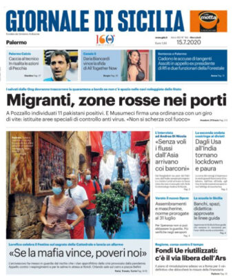 La prima pagina dell'edizione odierna del "Giornale di Sicilia" parla dei migranti e non solo. A Pozzallo individuati 11 pakistani...