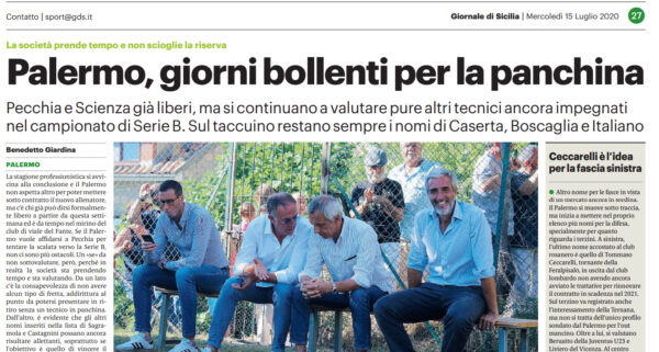 L'edizione odierna del "Giornale di Sicilia" parla della situazione panchina per il Palermo. Se i rosanero vogliono puntare su Pecchia,...