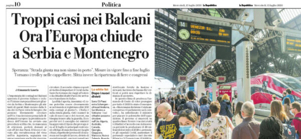L'edizione odierna di "Repubblica" parla dell'impennata dei contagi nei Balcani che spaventa il Governo italiano. L’Unione europea ha bloccato gli...
