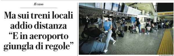 L'edizione odierna di "Repubblica" parla della situazione sui trani regionali che partono dal mare, dove il distanziamento è ormai saltato...