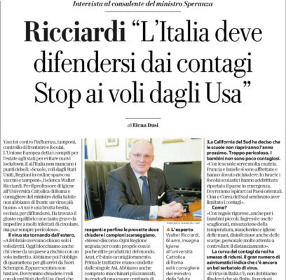 L'edizione odierna di "Repubblica" riporta le parole del professione di Igiene dell'università Cattolica di Roma e consigliere del ministro della...