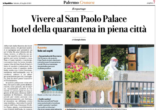 L'edizione odierna de "la Repubblica" si sofferma sull'hotel San Paolo Palace di Palermo. Dopo essere stato il 4 stelle della...